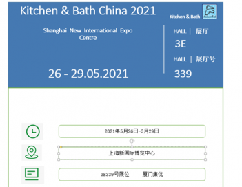 第26屆中國國際廚房、衛(wèi)浴設(shè)施展覽會將于2021年5月在上海拉開大幕。廈門集優(yōu)新材料有限公司誠邀閣下參觀:上海新國際博覽中心, 3E339號展位。